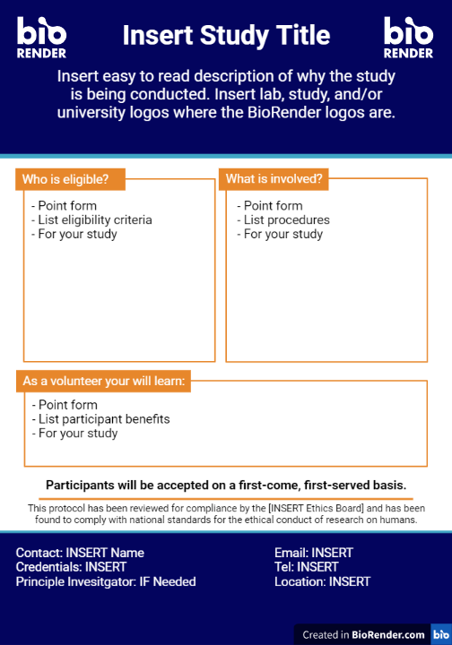 This template was created in BioRender to help create participant recruitment posters for research involving human participants.