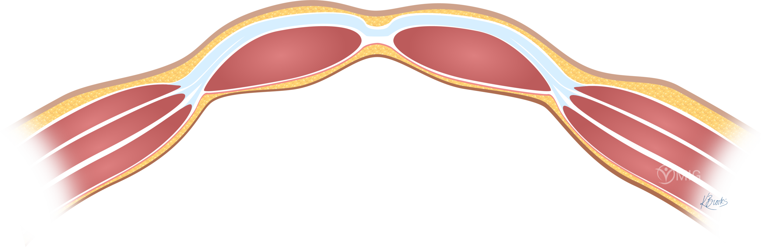 Simplified graphic depicting an abdominal wall cross-section from below the arcuate line. Created using Adobe Illustrator.